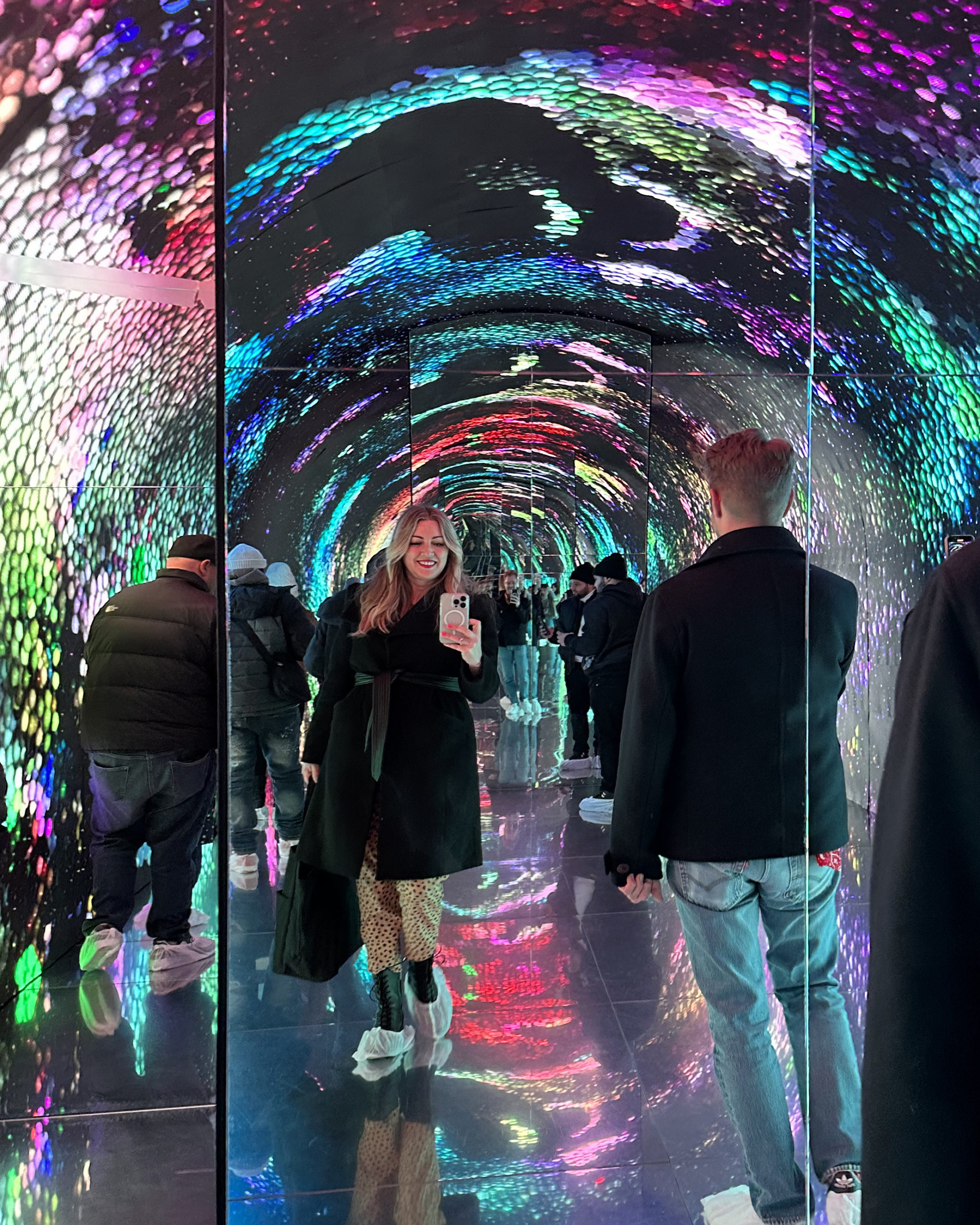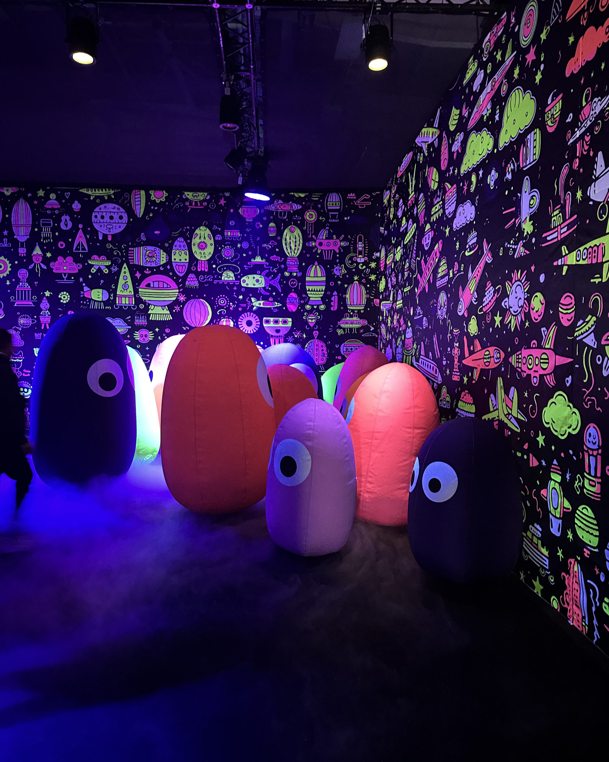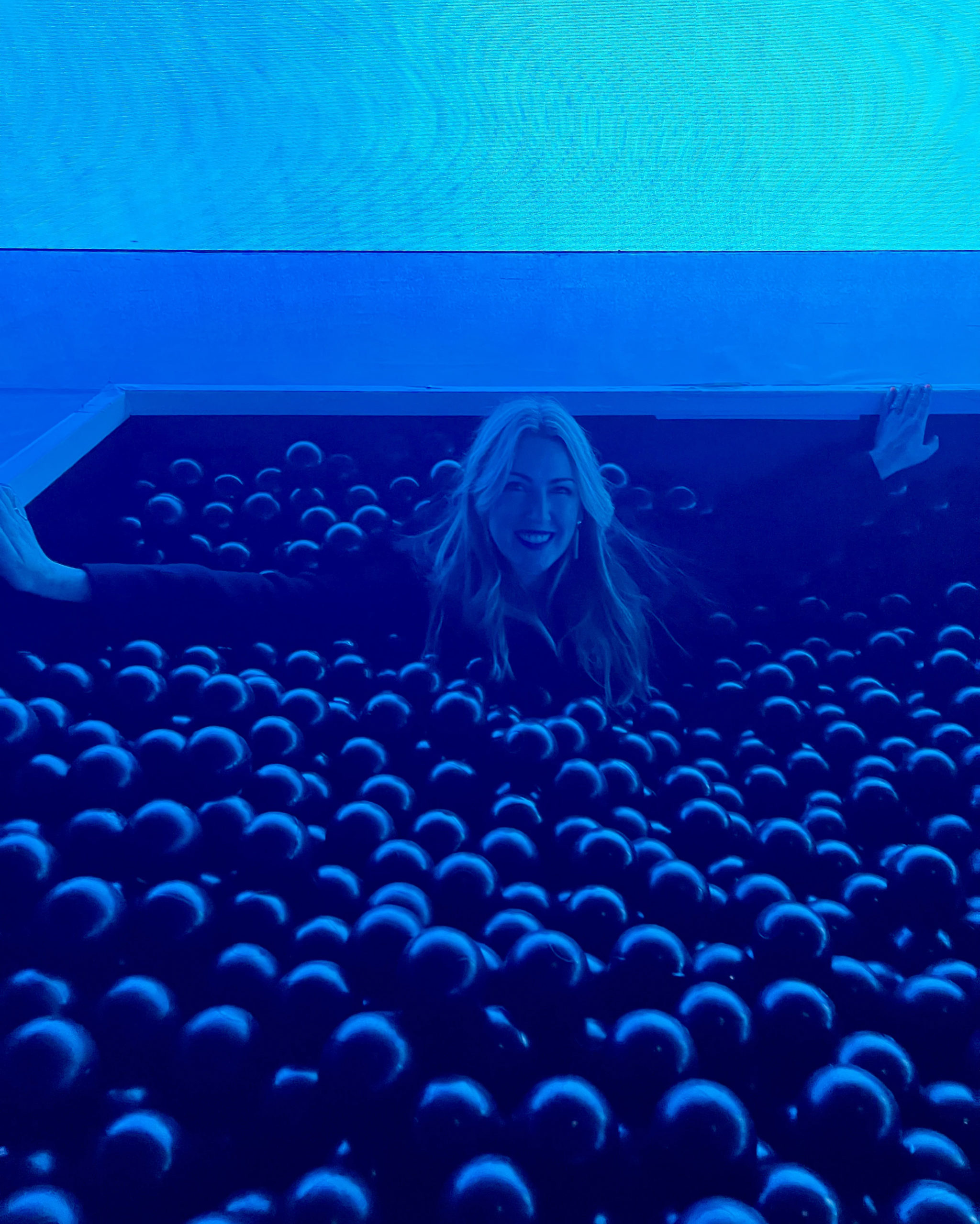 The balloon museum on Pier 36 brought inflatable art to the spotlight featuring 20 international artist installations within 12 experiential, insanely cool “rooms”. Starting outside in a playground of colorful inflatable “igloos” by artist Camilla Falsini the adventure flip flops between analog and digital immersions. I fell in love with the blinking garden creatures who communicated with otherworldly sounds through the bubble they lived in. In another room, bubbles filled the air, inflated with dry ice – taking popping bubbles to a whole other level! With my retail hat always on, I noticed there was less of an emphasis of product souvenirs of the experience that I’ve seen at Color Factory and Museum of Ice Cream. It did end with an opportunity to buy a flower bouquet (made up of balloons, of course) but was a side bar to the end that led to a selfie museum filled with individual scenic backdrops for social media.
