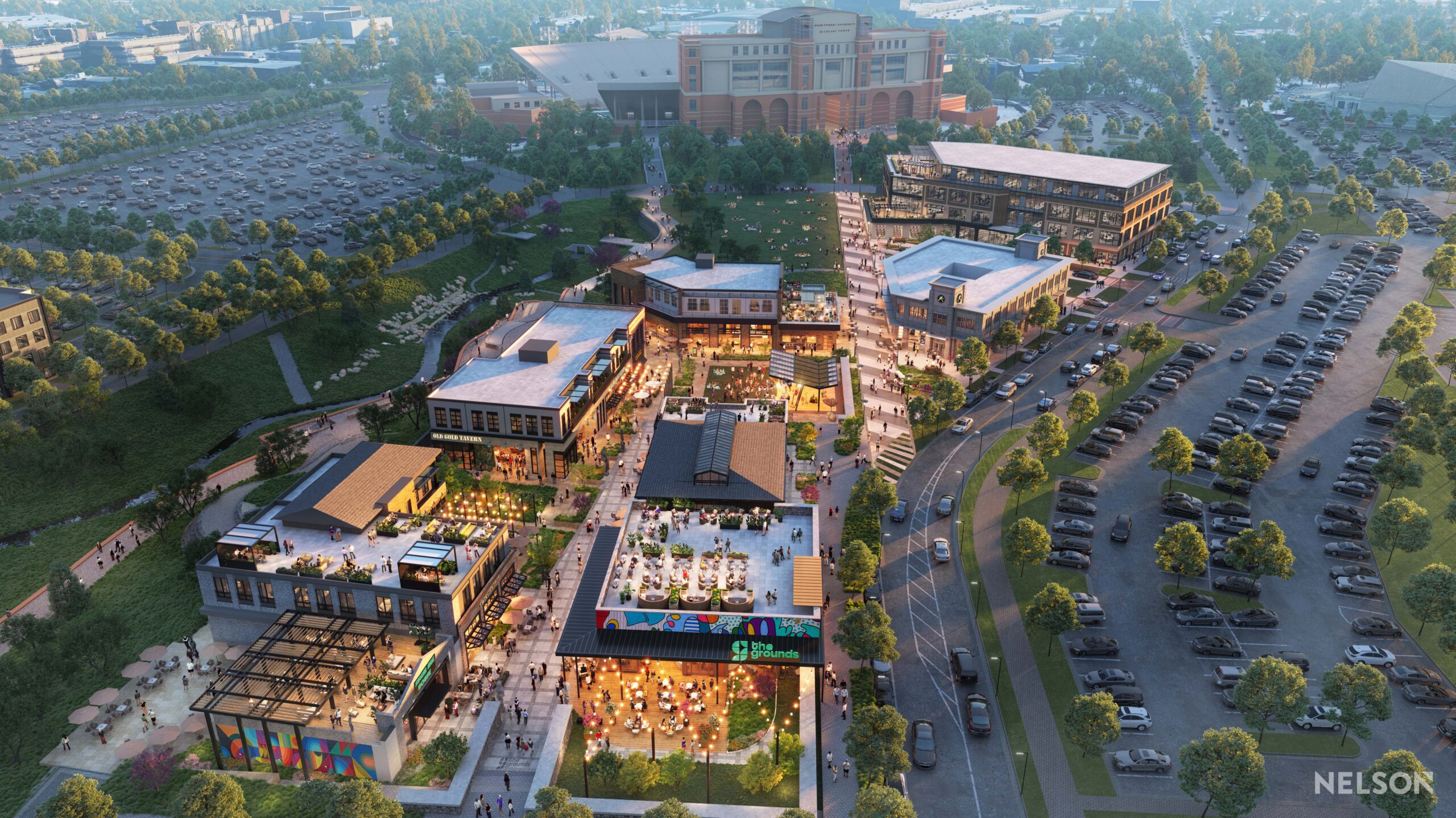 Developed in partnership with Wake Forest University, the city of Winston-Salem, Carter, Front Street Capital, and master planned by NELSON, this project strategically aligns with the 2015 North Central Planning Area recommendations—including greenway connections between Wake Forest’s Reynolda and Athletic campuses, dedicated bike infrastructure, and a Complete Streets approach to University Parkway.