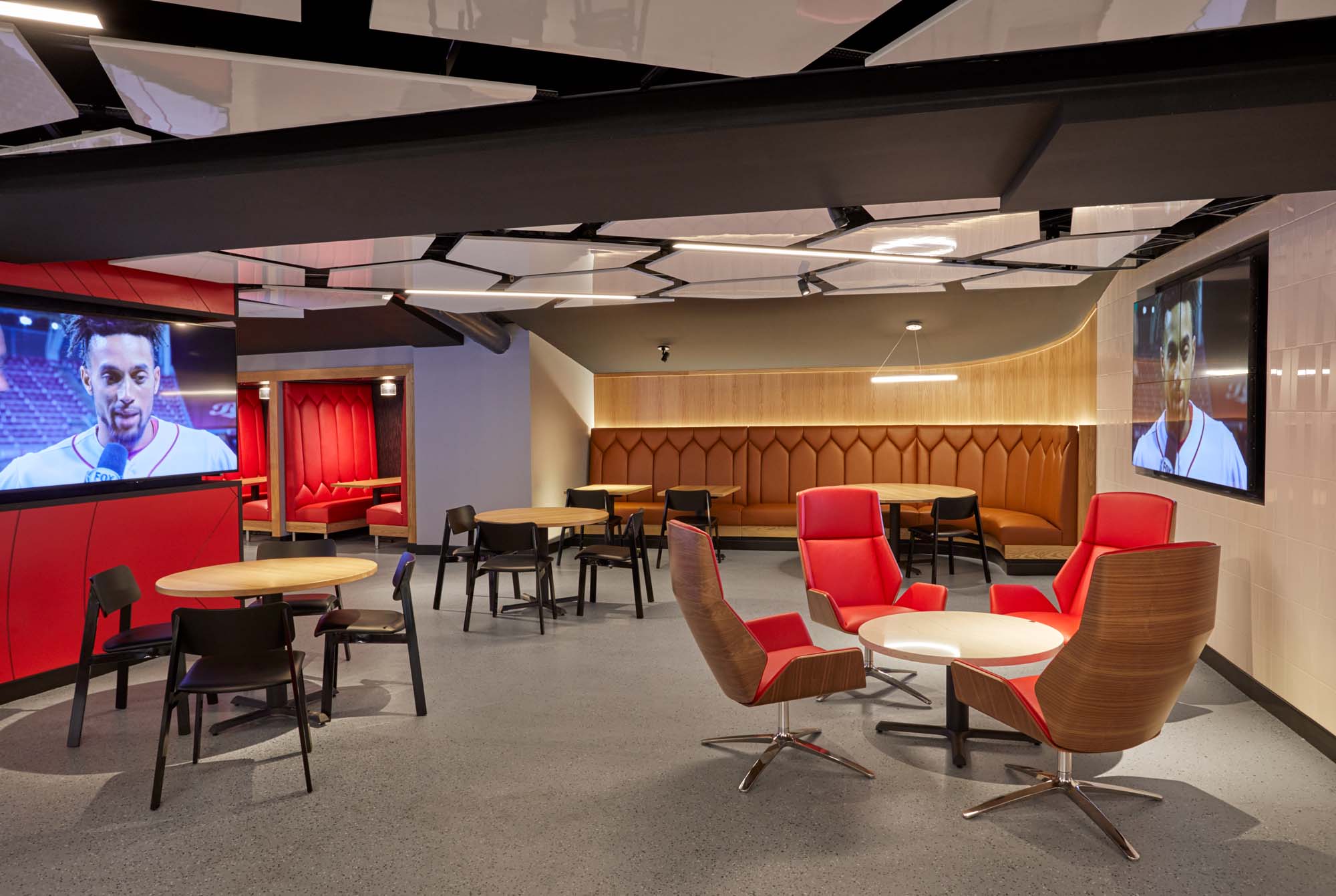 The environment provides a premium ballpark experience for game day and season ticket holders that bridges history, analytics, and technology into a one-of-a-kind experience where tradition meets science. An elevated modern interior pays homage to the history of the Reds franchise, while highlighting the modern-day science of scouting the five-tool player. The digital experience leverages full access to exclusive MLB player information, a live game feed, and interactive projection mapping connected to game time action. This entire experience provides passionate fans with an inside look at the science of baseball, allowing them to brush shoulders with MLB insiders in an environment that feels modern, exclusive, and high tech.