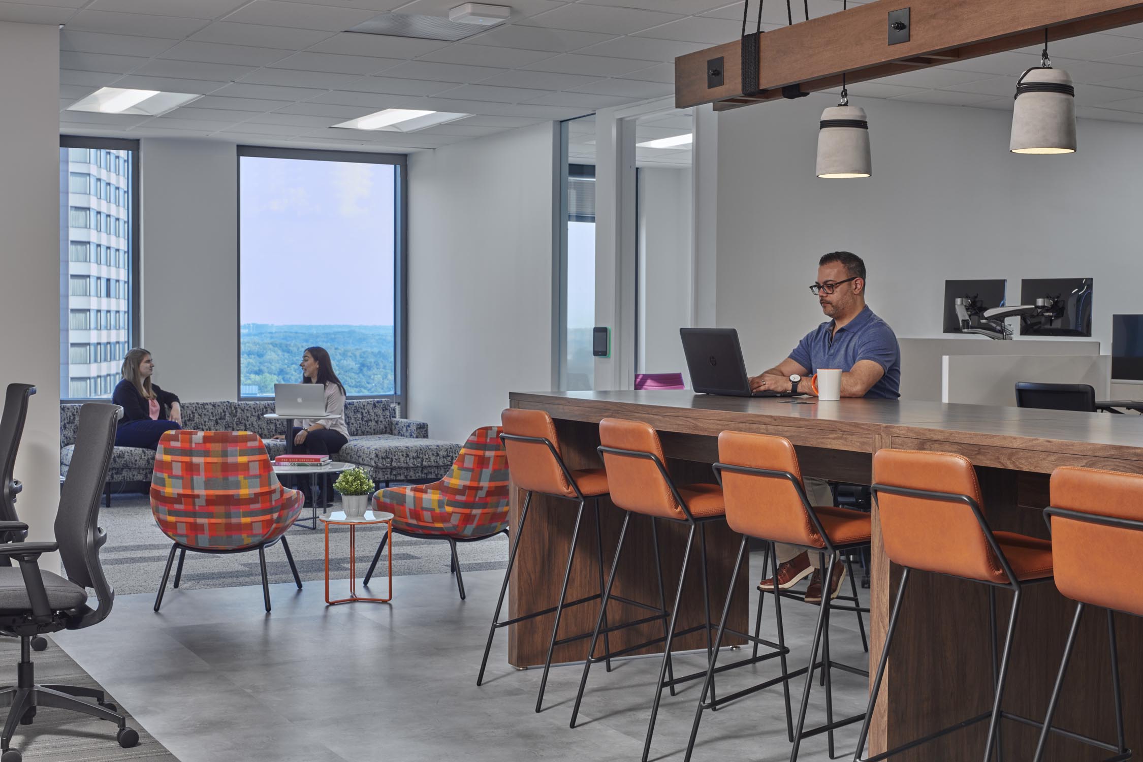 We partnered with Tricentis, an Austrian technology company, to create a new workspace that would address a variety of challenges they were facing. The company was competing for talent, experiencing changes in their demographic needs, lacking expansion space, and implementing new workflow needs, all while merging with a sister company and going through a rebrand.